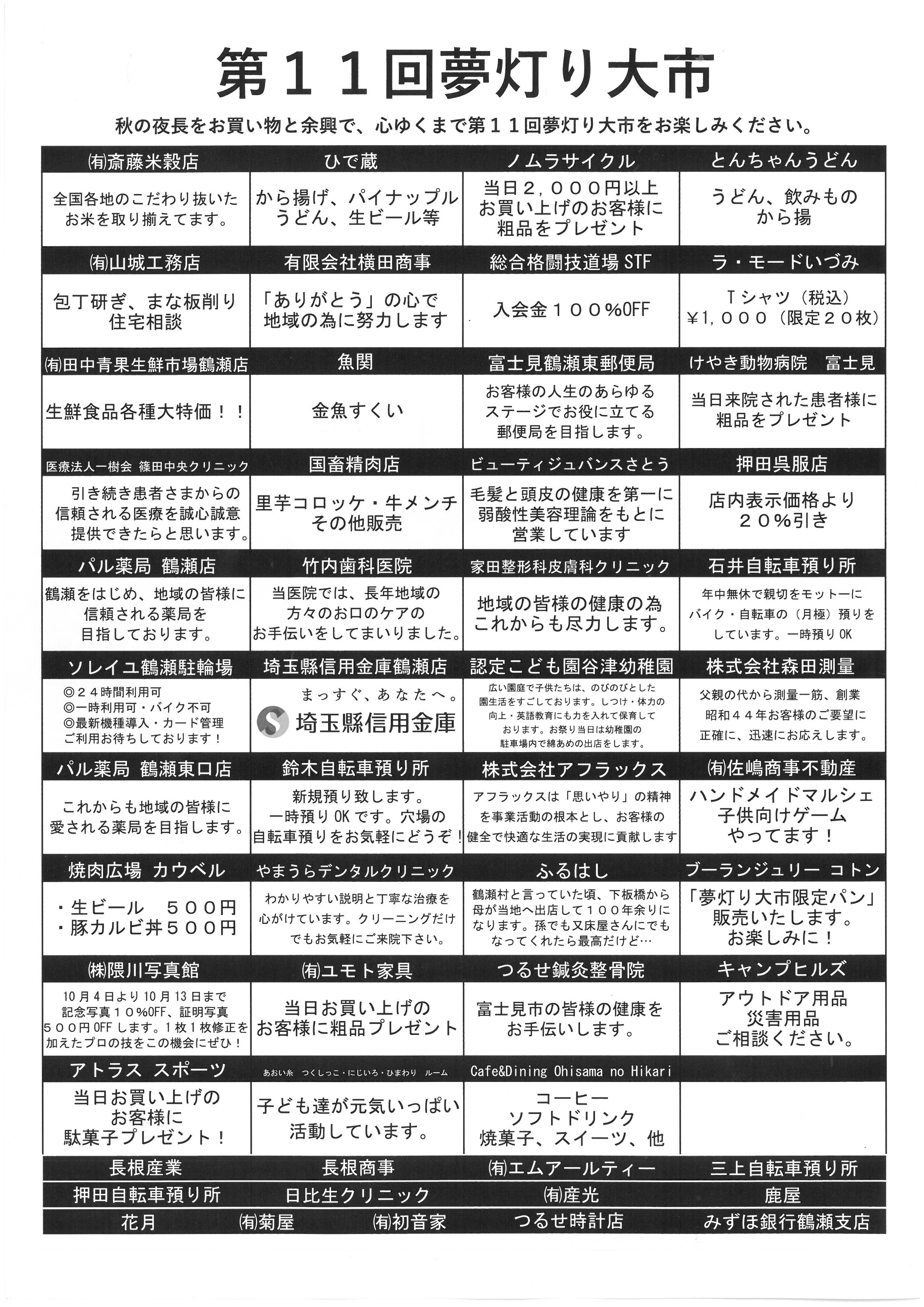 鶴瀬東口の商店会の秋の恒例行事、「夢灯り大市」